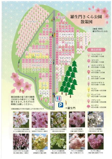 羅生門入口にある「さくら公園」では、八重桜など11種類700本の桜が見ごろを迎えています。