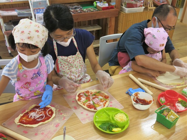 夕食は、熱々の窯焼きピザを作っていただきます。