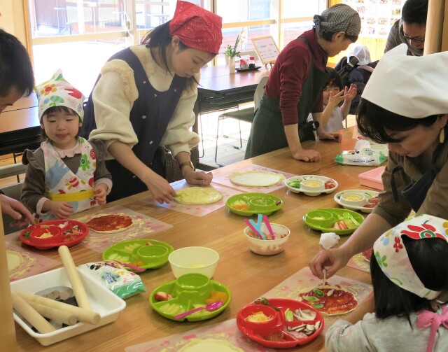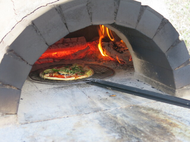 窯で焼いて、熱々の焼きたてピザをいただきます。