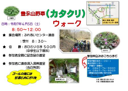 行く・食べる・会う行く4/5(土)開催:豊永山野草(カタクリ)ウォークの参加者を募集します!