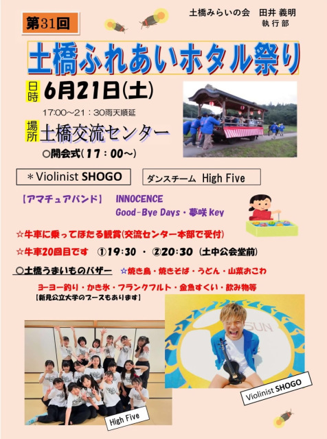 行く・食べる・会う行く食べる会う6/21(土)第31回土橋ふれあいホタル祭り開催します♪