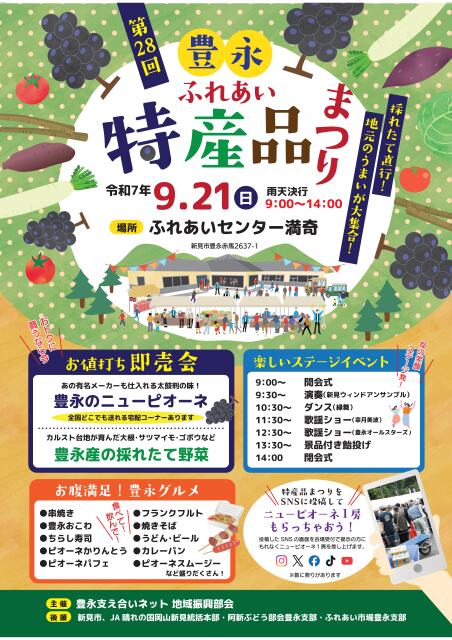 行く・食べる・会う行く食べる会う9/21(日)第28回豊永ふれあい特産品まつりを開催します♪新見市