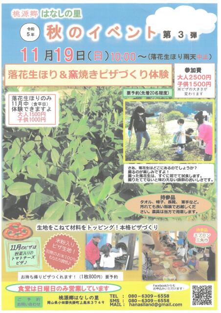 行く・食べる・会う行く食べる11/19開催!落花生ほり&窯焼きピザづくり体験参加者募集中!!桃源郷はなしの里