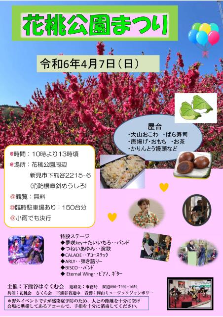 行く・食べる・会う行く食べる会う4/7(日)花桃公園まつり開催しま~す♪新見市下熊谷