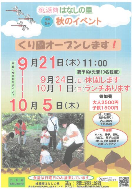 行く・食べる・会う行く9/21~くり園オープン!桃源郷はなしの里秋イベント