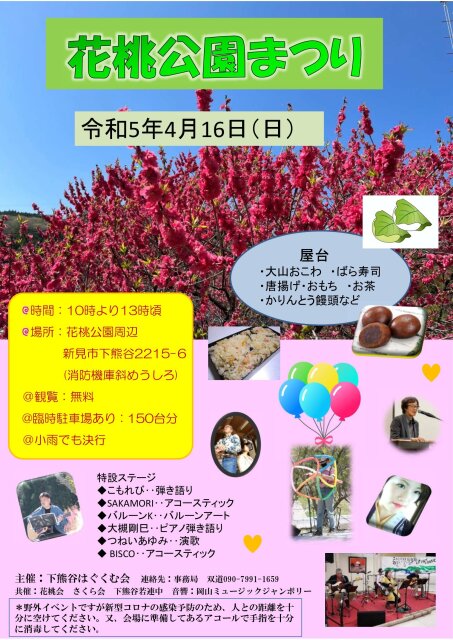 行く・食べる・会う行く食べる会う4月16日(日)花桃公園まつり開催♪