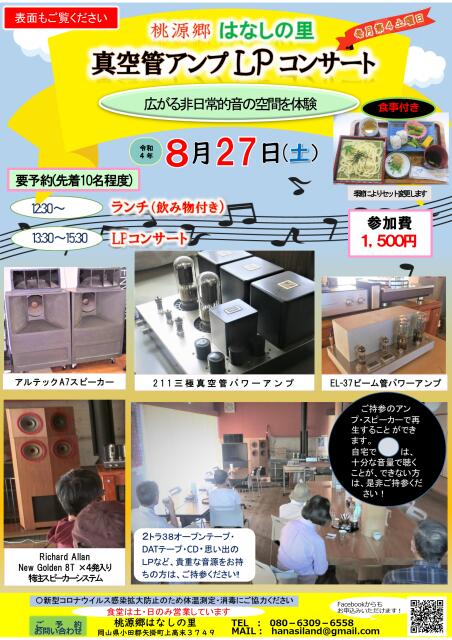 行く・食べる・会う行く食べる会う8/27 真空管アンプLPコンサート開催します♪