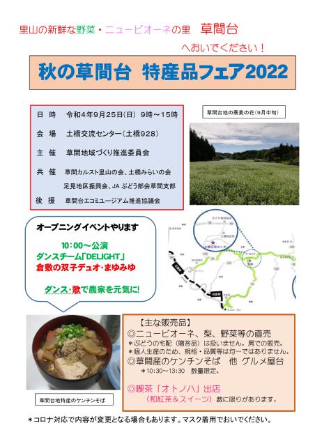 行く・食べる・会う行く食べる会う9/25開催! 秋の草間台 特産品フェア2022♪